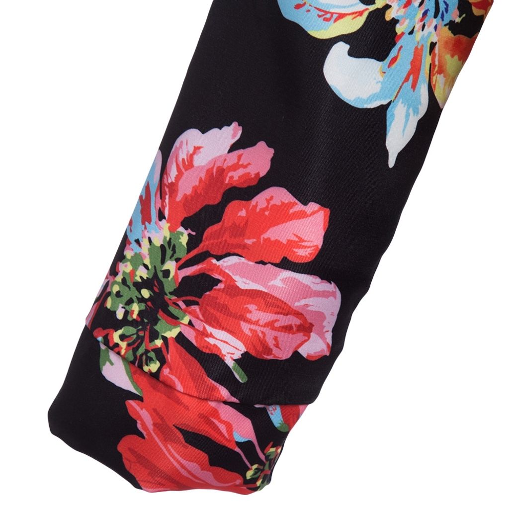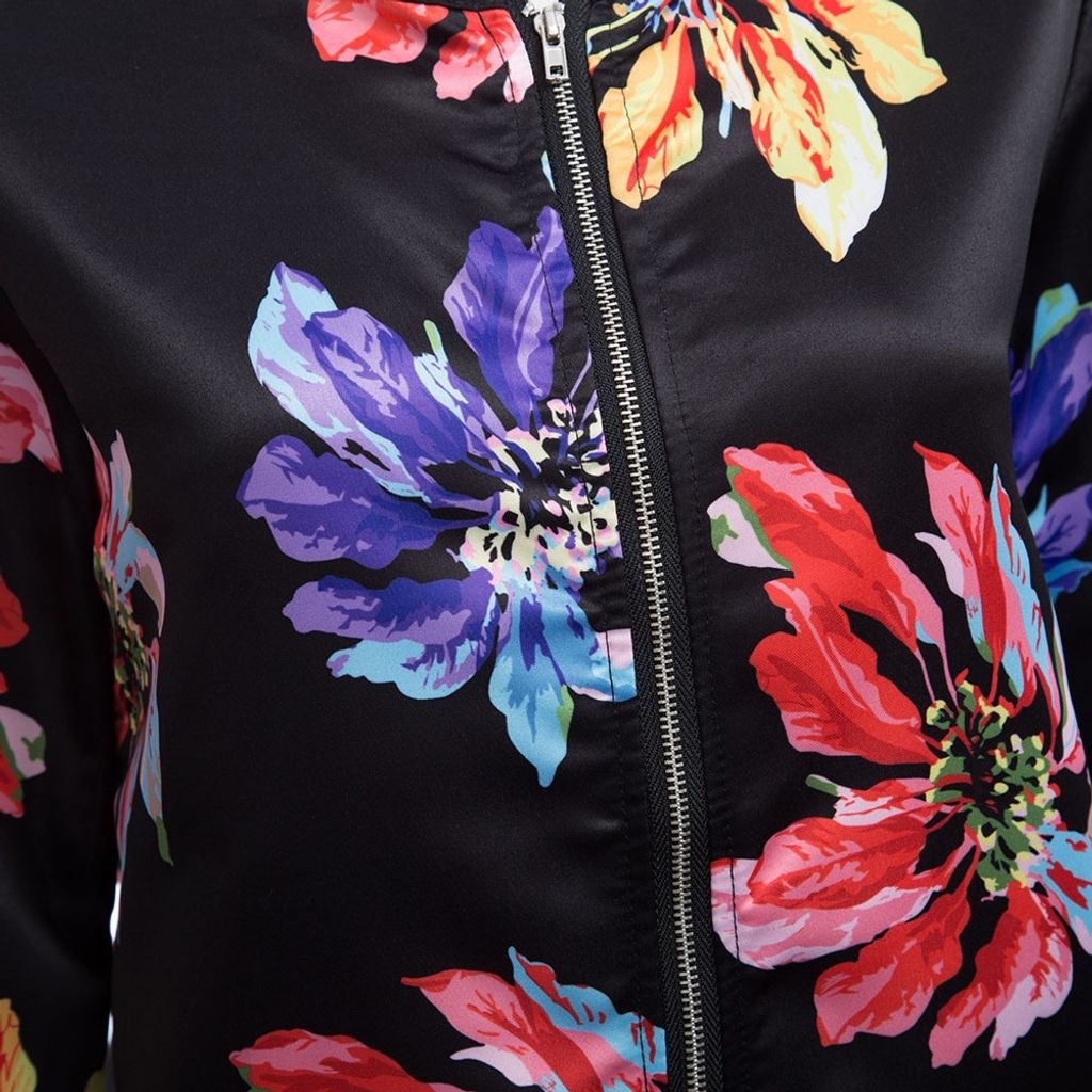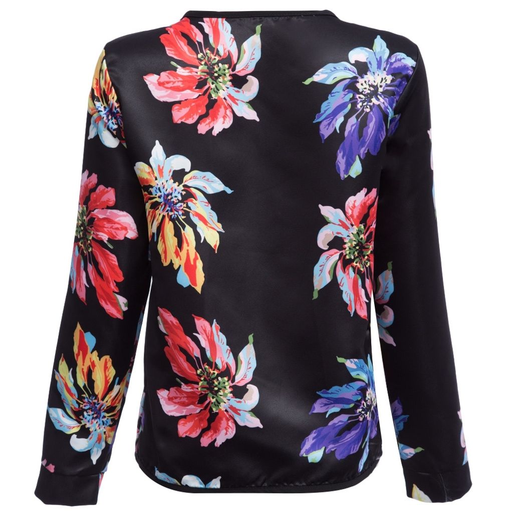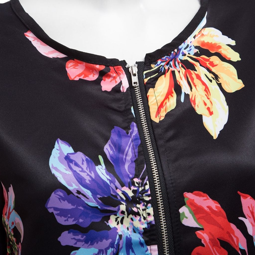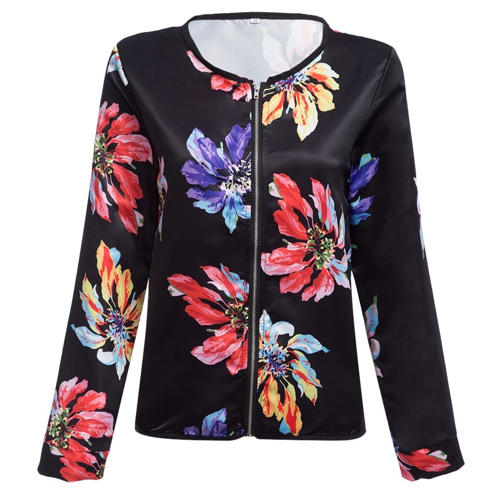 ROUND NECK LONG SLEEVE FLOWER PRINT ZIPPER DESIGN COAT FOR LADIES