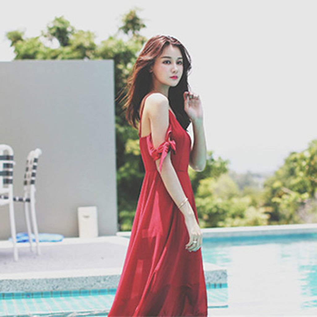 ELEGANT WOMEN'S CHIFFON DRESS (RED)