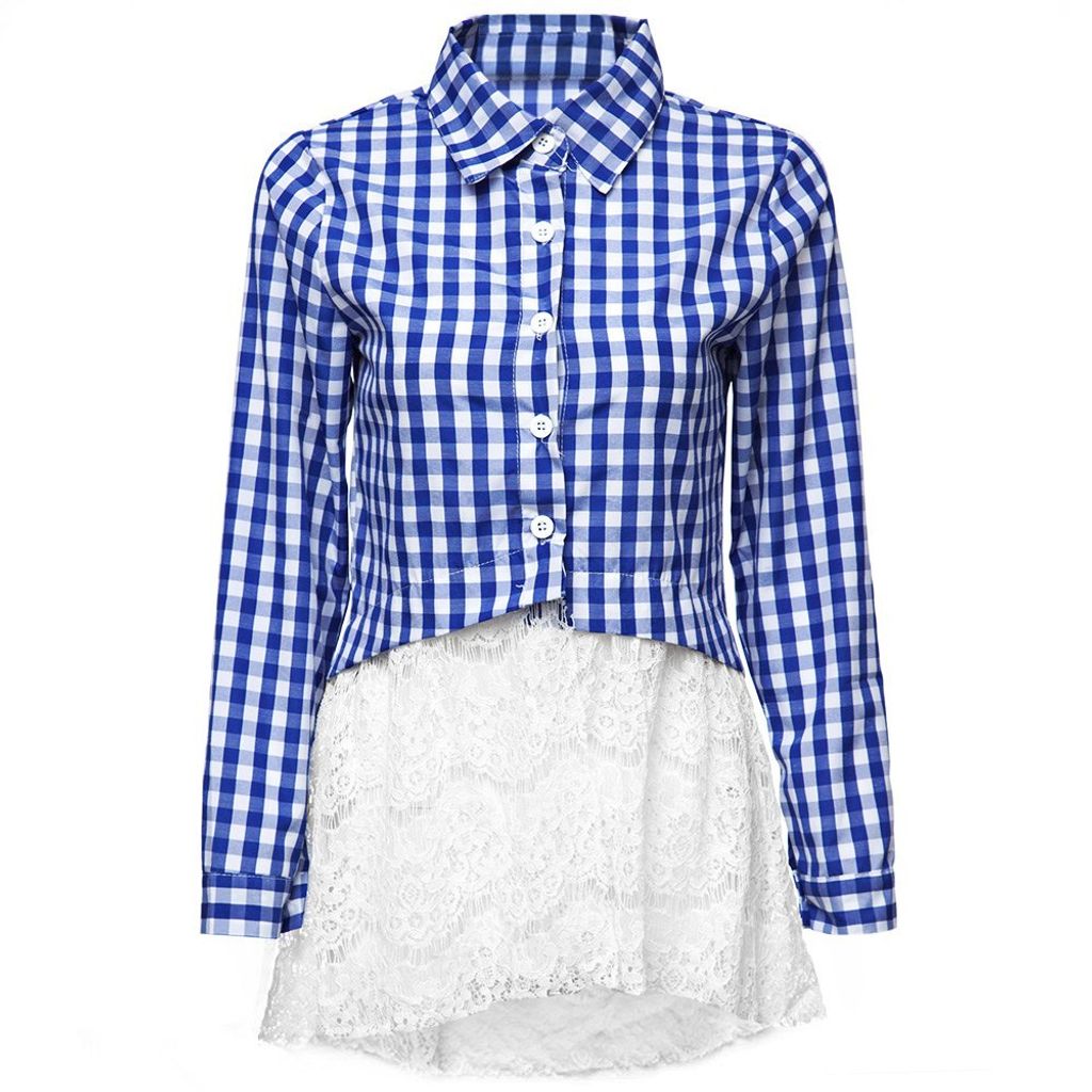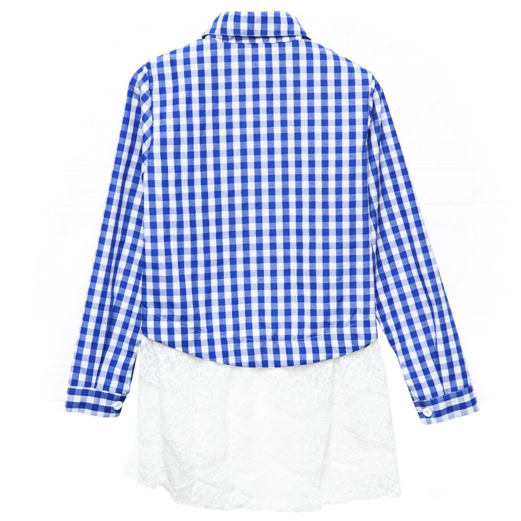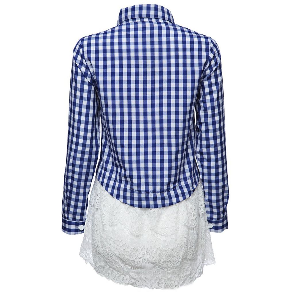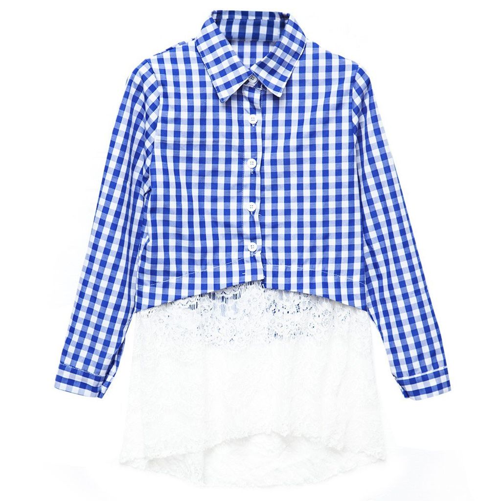 STYLISH TURN-DOWN COLLAR LONG SLEEVE LATTICE AND LACE STITCHING WOMEN'S SHIRT