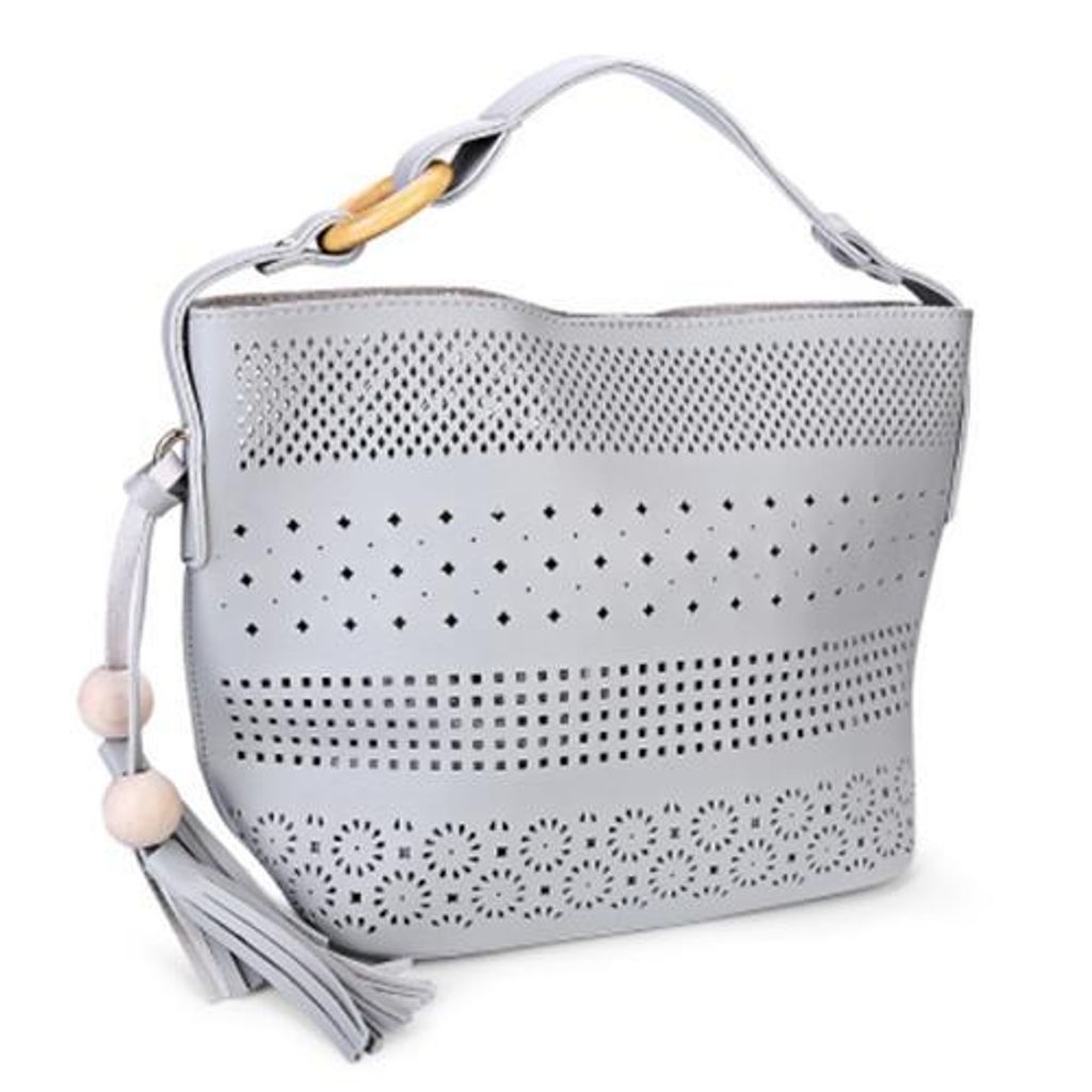 TASSEL HOLLOW OUT TOTE BAG (GRAY)