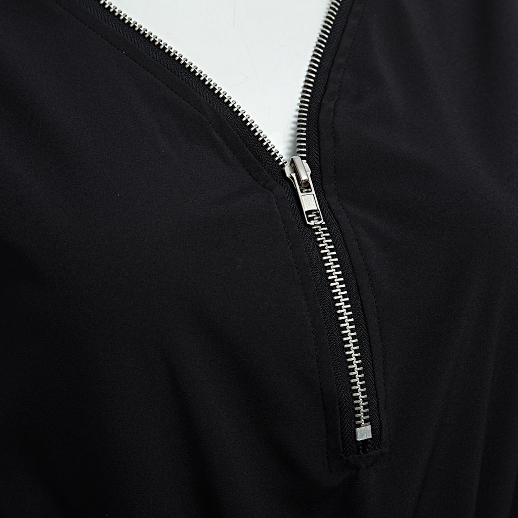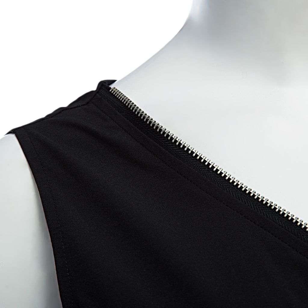 Casual V-neck Sleeveless Front Zipper Design Elastic Waist Pure Color Romper for Women