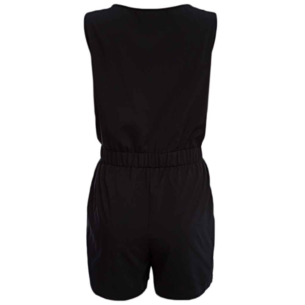 WOMEN'S CASUAL V-NECK SLEEVELESS ELASTIC WAIST ROMPER (BLACK, SIZE S/M/L/XL)