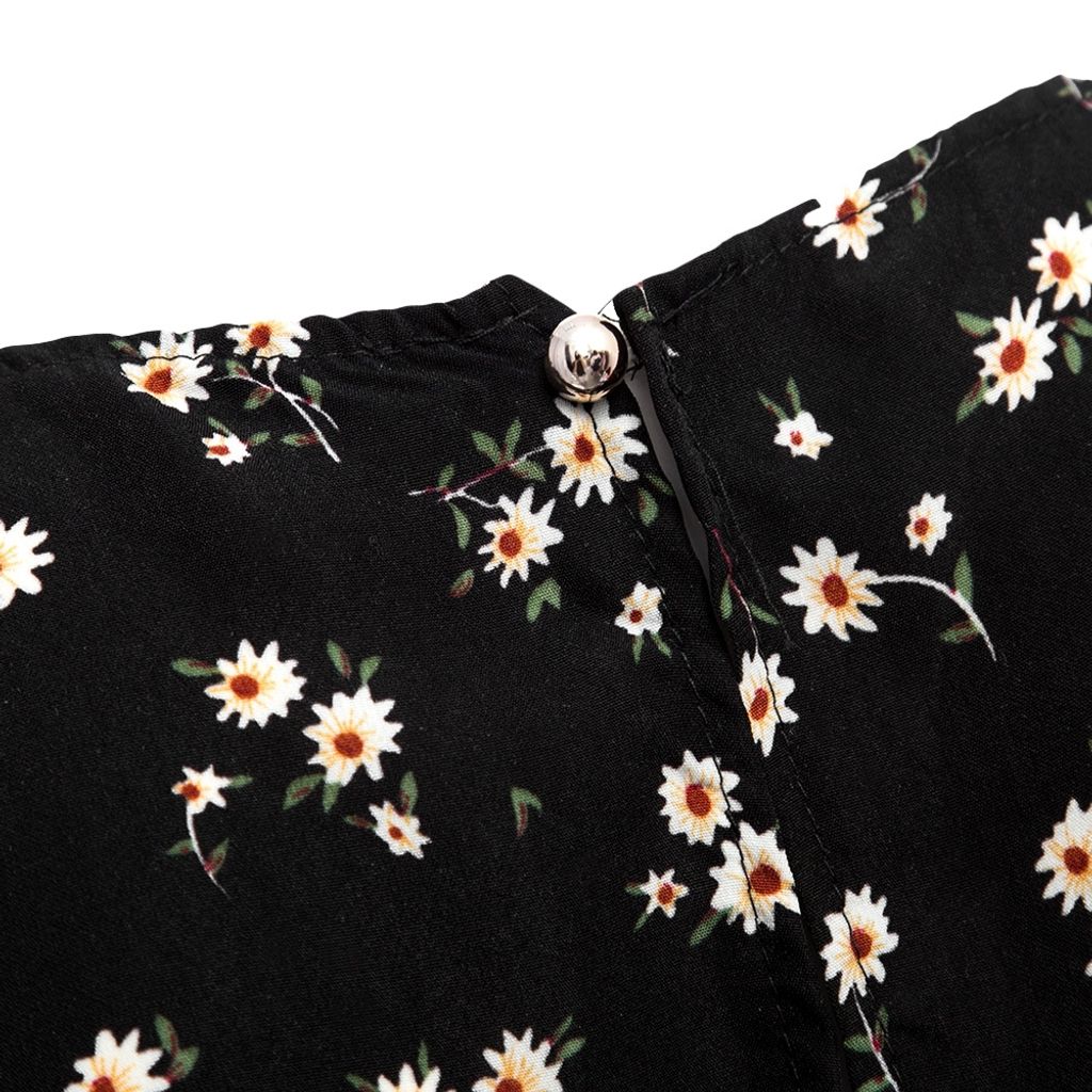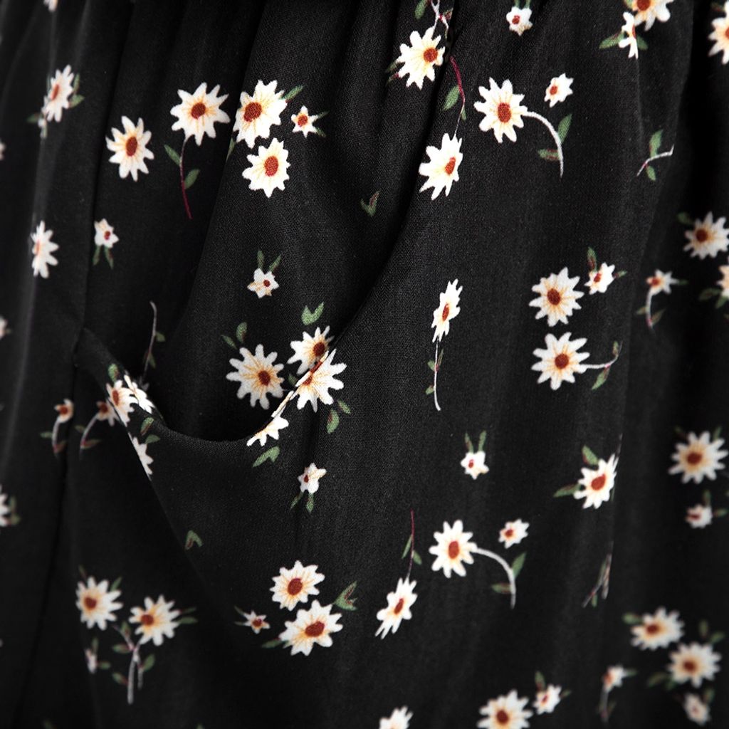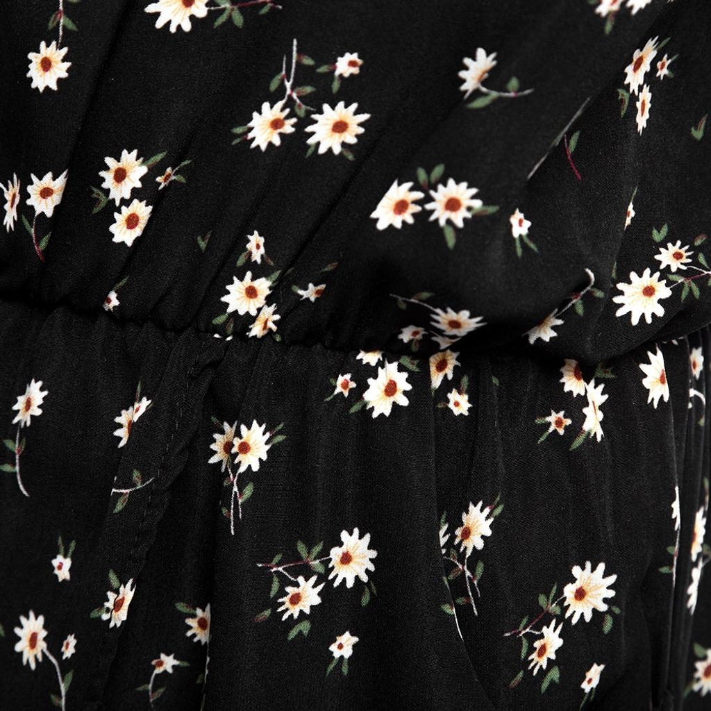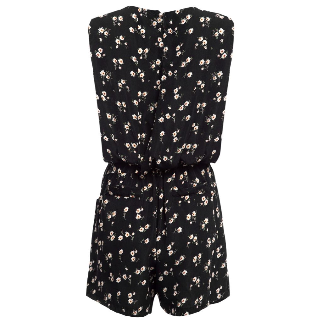 WOMEN SLEEVELESS HOLLOW OUT ELASTIC WAIST POCKET FLORAL PRINT ROMPER (BLACK, SIZE S/M/L/XL)